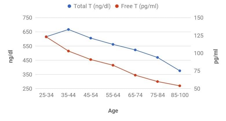 Meaning by the age of 40, most men will experience a significant drop in their testosterone level due to both the normal aging processes and lifestyle changes such as increased stress, poor nutrition, sedentary lifestyle and other factors.